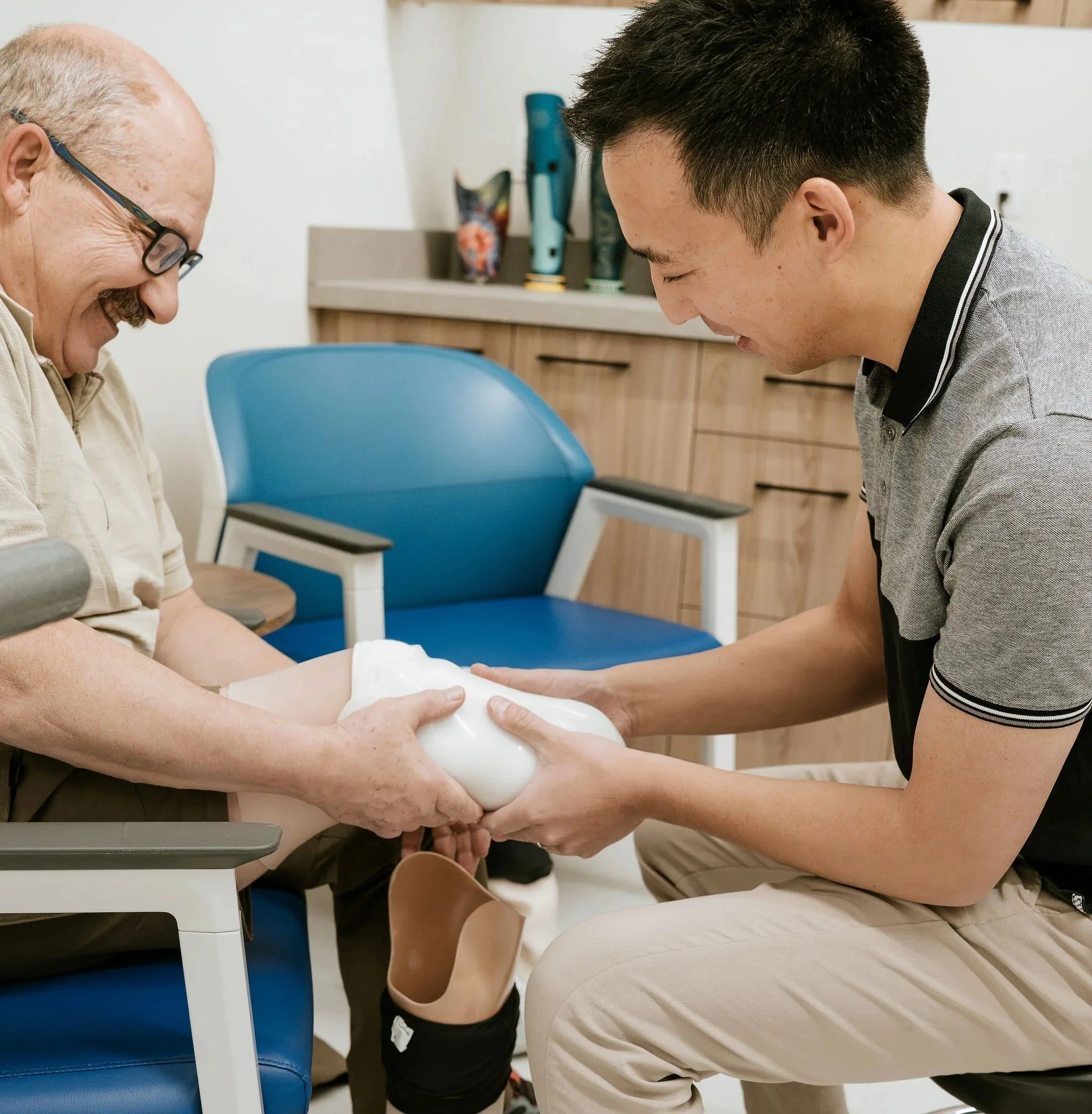 After delivery, our team will provide ongoing support, making adjustments as needed to help you maintain an active and comfortable lifestyle. We’ll also give you clear instructions and helpful tips to keep your residual limb, prosthetic, liner, and sheaths clean and well-maintained. Feel free to reach out to us anytime with questions or for updates — we're here to help.